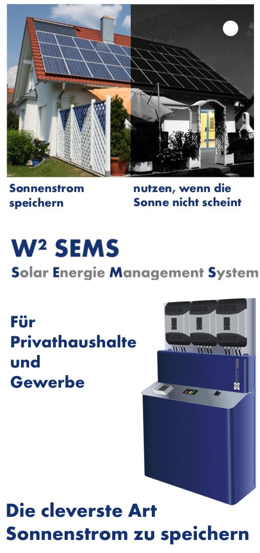W² SEMS ist eine spezielle Entwicklung für die Solarstrom-Speicherung und für eine